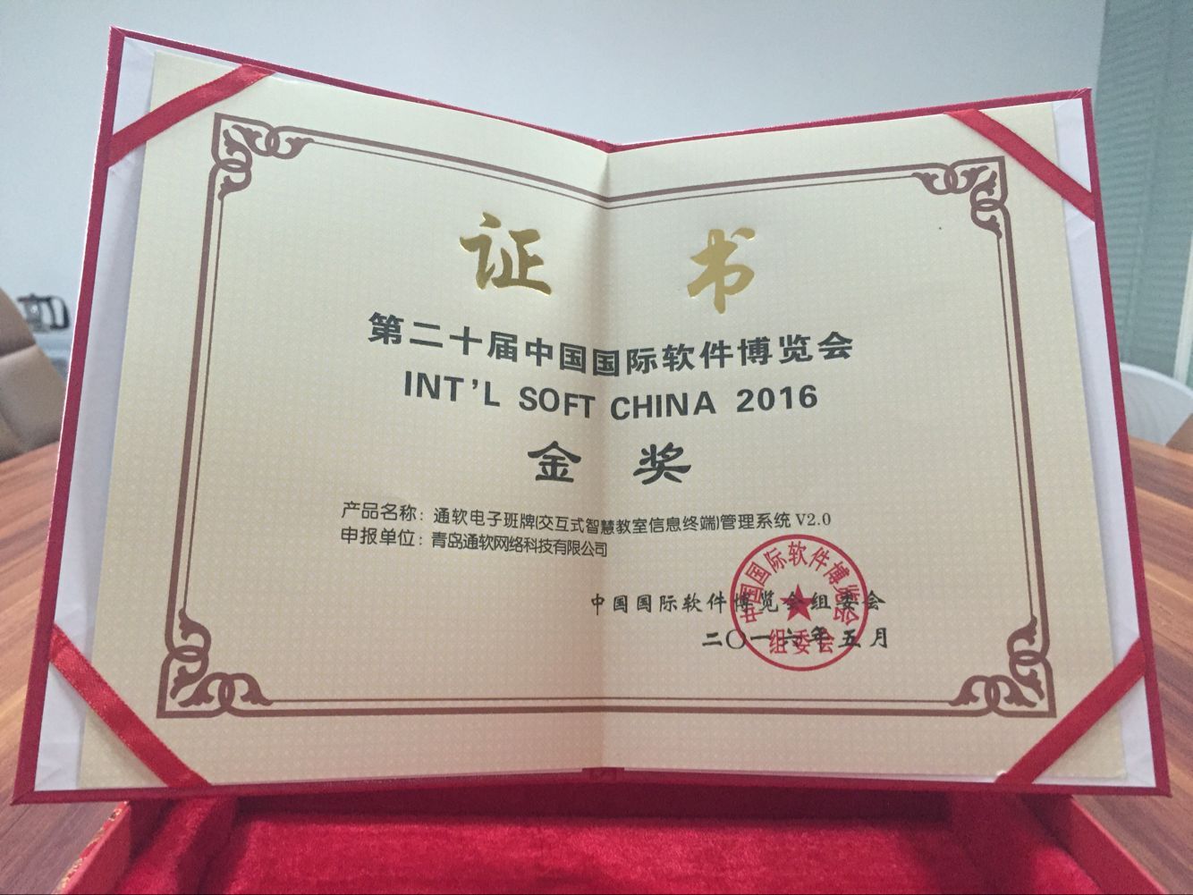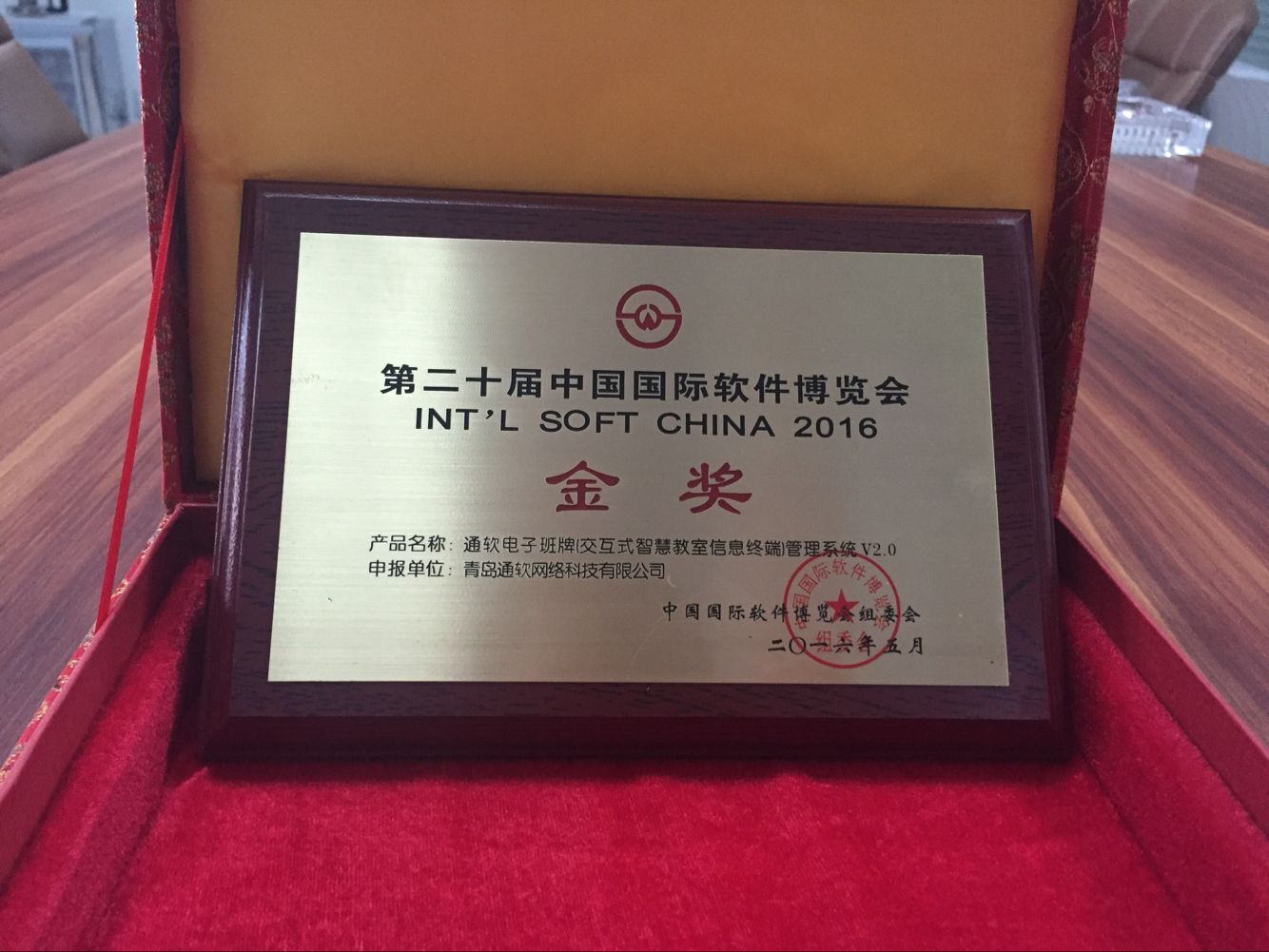 熱烈慶祝我公司榮獲第二十屆中國國際軟件博覽會(huì )組委會(huì )辦公室頒發(fā)的軟件產(chǎn)品金獎! 近日,由工業(yè)和信息化部主辦,國家發(fā)展和改革委員會(huì )、科學(xué)技術(shù)部、國家外國專(zhuān)家局和北京市人民政府參與的第二十屆中國國際軟件博覽會(huì )在北京圓滿(mǎn)落幕,青島通軟網(wǎng)絡(luò )科技有限公司的產(chǎn)品“通軟電子班牌(交互式智慧教室信息終端)管理系統V2.0”榮獲第二十屆中國國際軟件博覽會(huì )金獎。 此次獲獎的通軟電子班牌(交互式智慧教室信息終端)管理系統V2.0是青島通軟公司多年跟蹤高考改革試點(diǎn),積累大量經(jīng)驗研發(fā)出的一套內置于電子班牌設備的管理系統,緊貼“新高考,新課改”大環(huán)境下學(xué)校對學(xué)生的管理需求,全方位實(shí)現了學(xué)生在校的立體化管理。 軟博會(huì )是軟件和信息技術(shù)服務(wù)業(yè)領(lǐng)域規模最大、最具影響力、持續時(shí)間最長(cháng)的軟件專(zhuān)業(yè)展會(huì )。今年舉辦的第二十屆軟博會(huì )以“促進(jìn)兩化深度融合,服務(wù)制造強國建設”為主題,集中展示軟件支撐“中國制造2025”,“互聯(lián)網(wǎng)+”等標志性成果。作為中國智慧校園一體化方案的領(lǐng)航者,青島通軟始終秉承創(chuàng )新、求實(shí)、熱情的服務(wù)理念,為用戶(hù)提供高質(zhì)量的產(chǎn)品、技術(shù)支持以及產(chǎn)品增值服務(wù),以先進(jìn)的信息技術(shù),持續為客戶(hù)創(chuàng )造最大價(jià)值,發(fā)揮企業(yè)在智慧校園領(lǐng)域的核心作用。